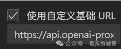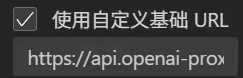 4. 勾选“使用自定义基础URL”,并输入对应的域名:https://api.openai-proxy.org/anthropic (这就是前面在CloseAI“接入文档”里看到的地址)。