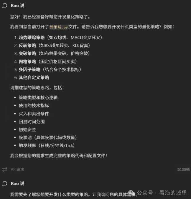 后续,你还可以不断在Roo的对话窗口中,继续向AI描述你的策略修改想法,进行迭代优化,直到得到满意的结果。