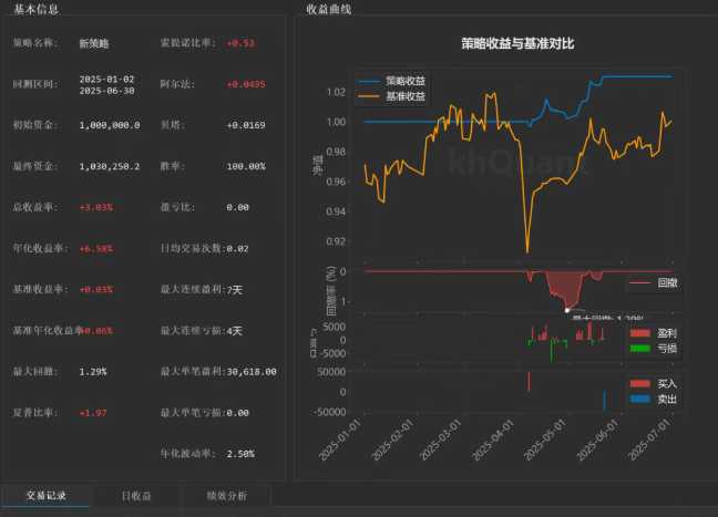 很快,你就可以看到回测结果了。一个符合你预期的策略已经成功运行!