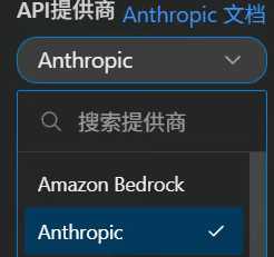2. API提供商 选择 Anthropic (Claude的服务商)。