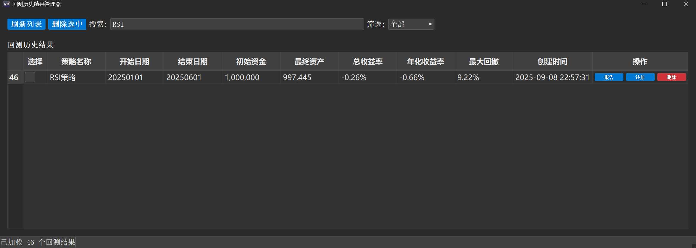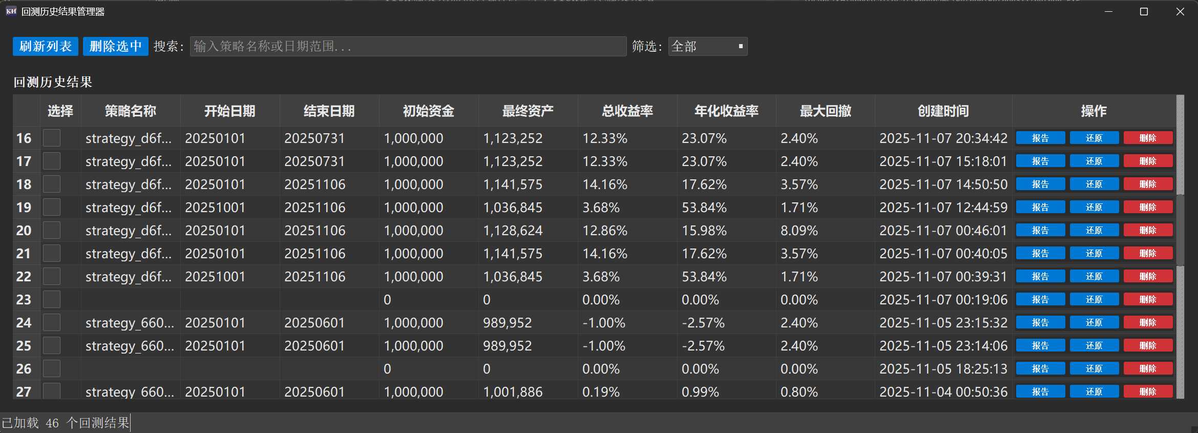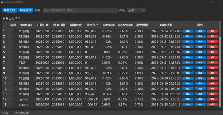 * 效果:选中的回测结果将被一次性、安全地批量删除。请注意,此操作不可恢复。