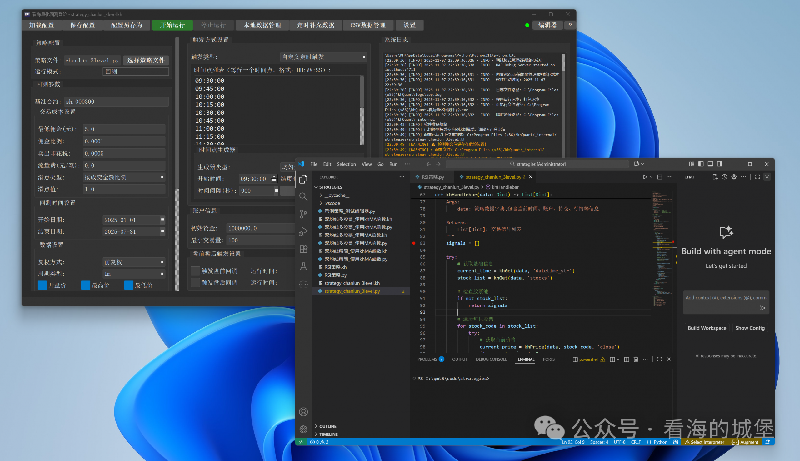 * 和谐的视觉体验:内置VS Code的界面主题与KhQuant系统保持统一,确保了视觉上的和谐与美观。